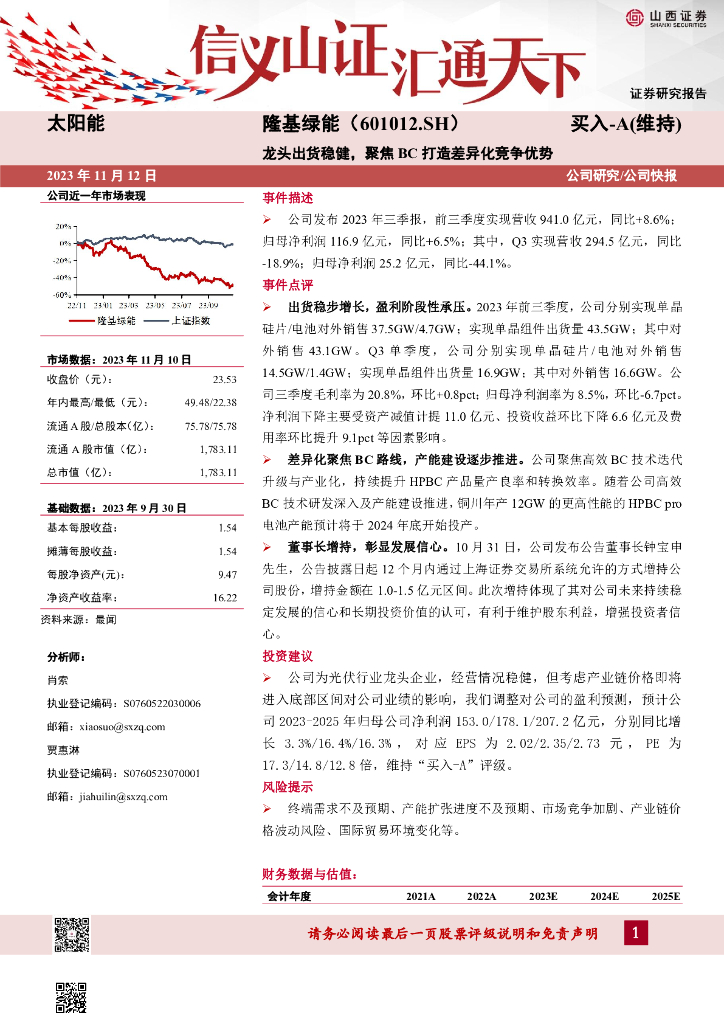 山西证券:隆基绿能(601012)-龙头出货稳健,聚焦BC打造差异化竞争优势.pdf