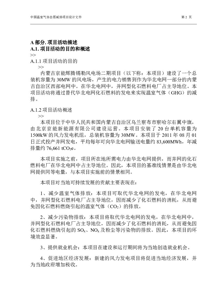 内蒙古京能辉腾锡勒风电场二期项目设计文件(PDD).pdf