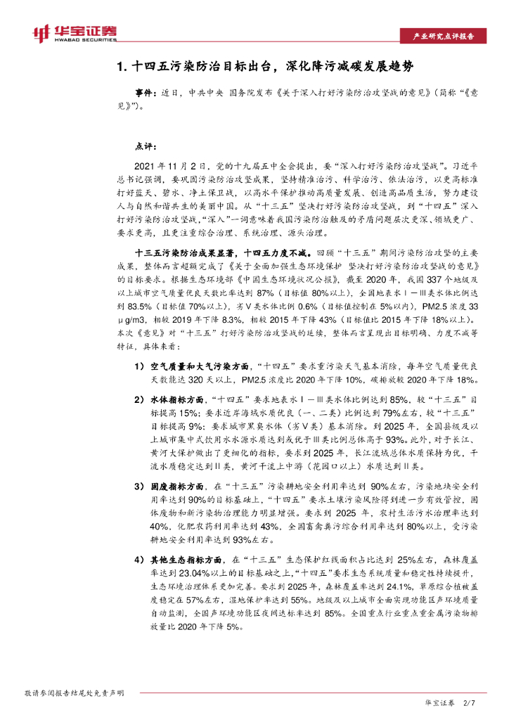 华宝证券:碳中和系列报告:十四五污染防治目标出台,深化降污减碳发展趋势.pdf