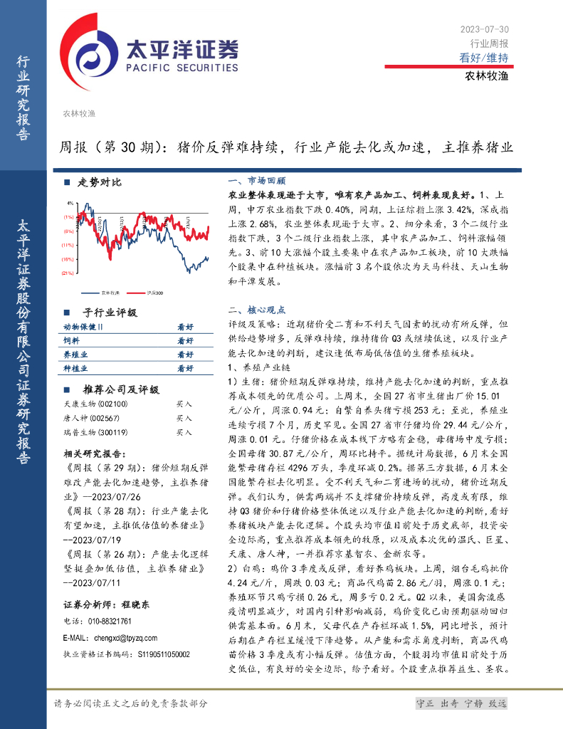太平洋证券:农林牧渔周报(第30期):猪价反弹难持续,行业产能去化或加速,主推养猪业.pdf