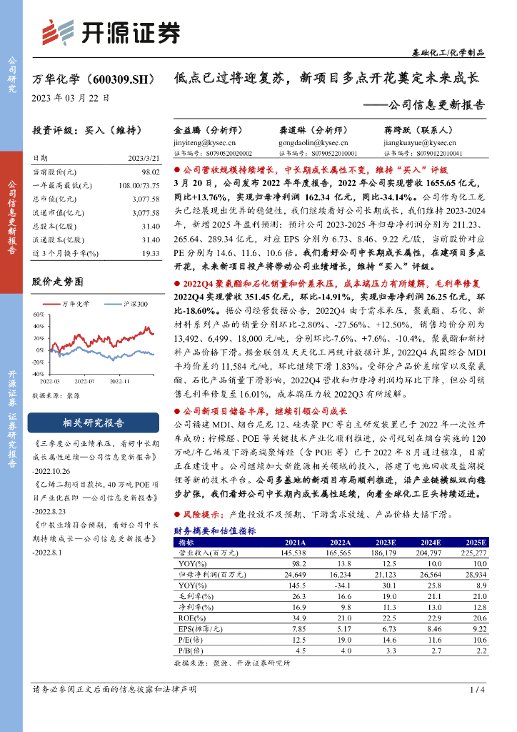 开源证券:万华化学(600309)-公司信息更新报告:低点已过将迎复苏,新项目多点开花奠定未来成长.pdf