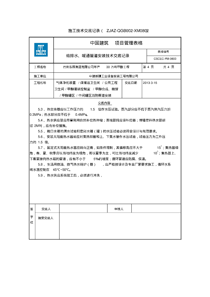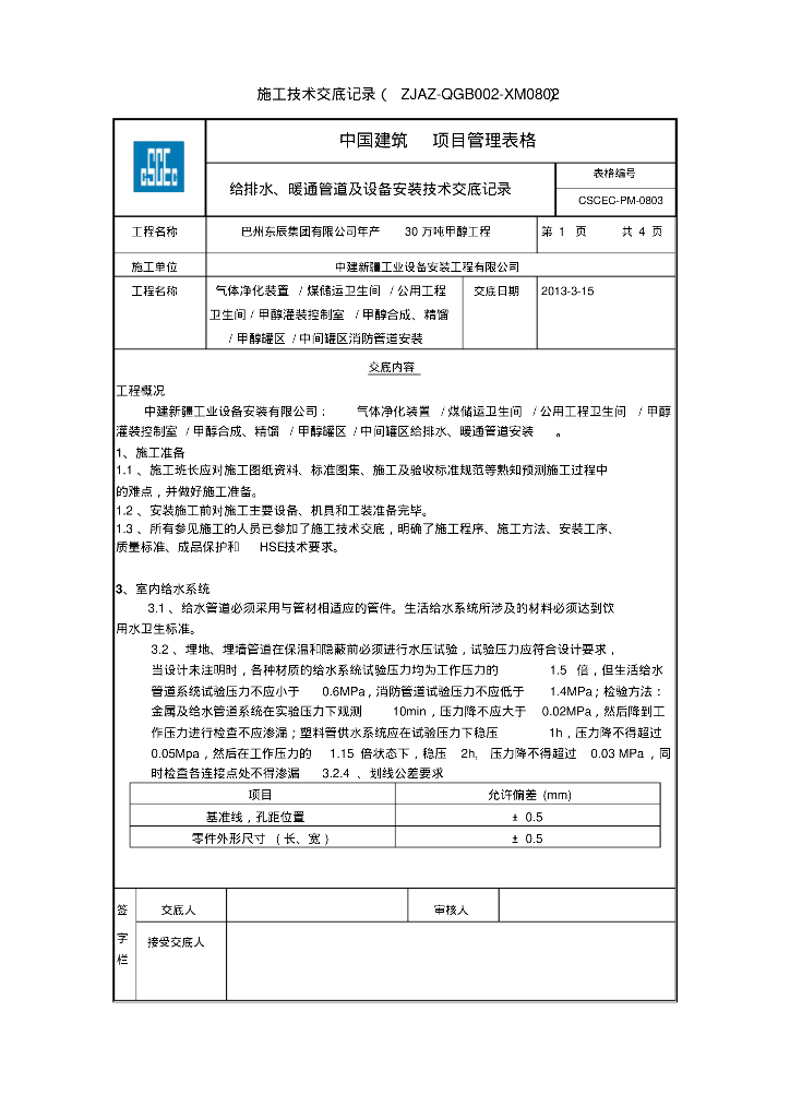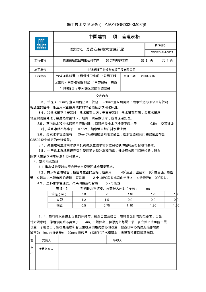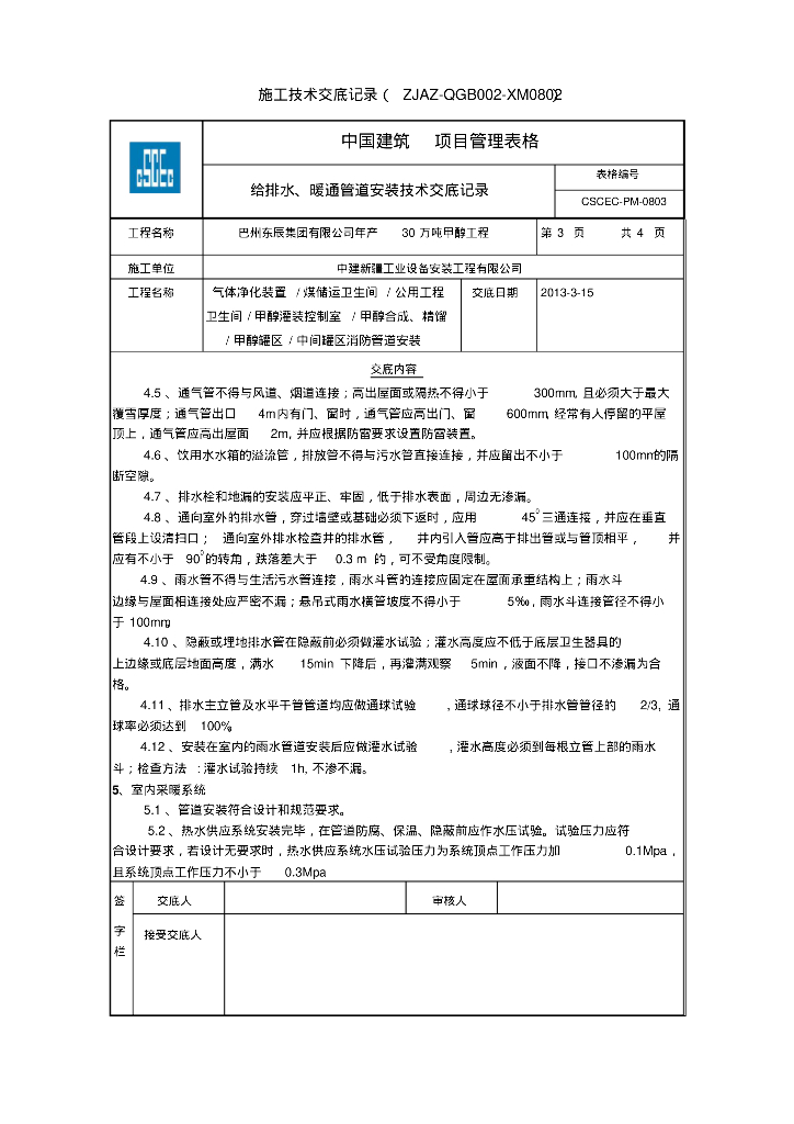 巴州东辰集团有限公司年产30万吨甲醇工程给排水、暖通技术交底.pdf