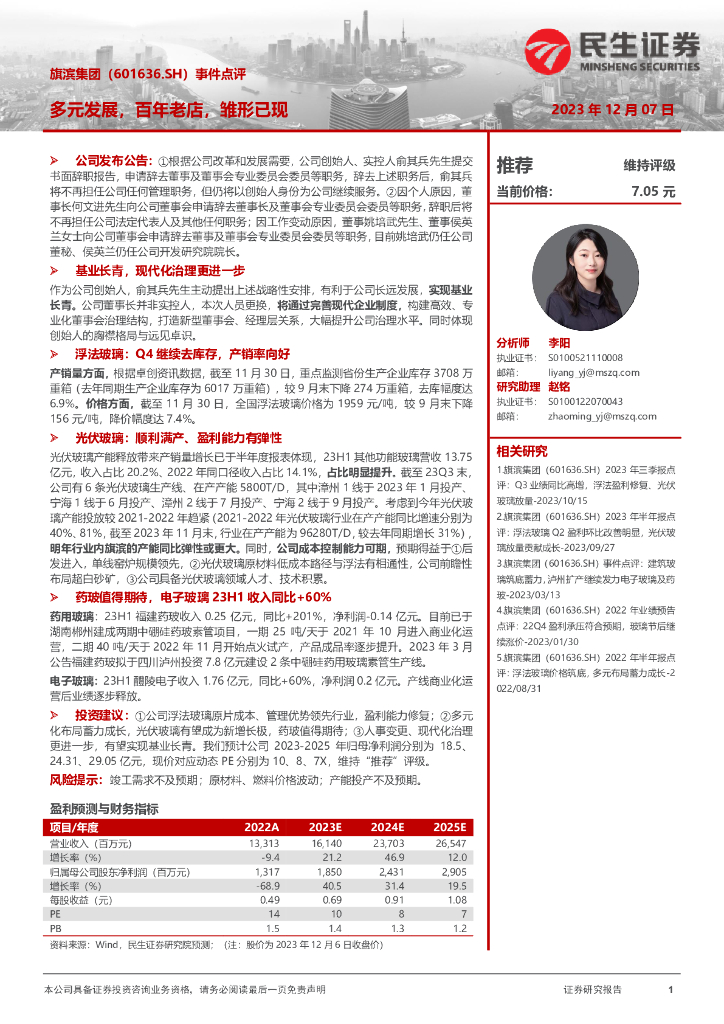 民生证券:旗滨集团(601636)-事件点评:多元发展,百年老店,雏形已现.pdf