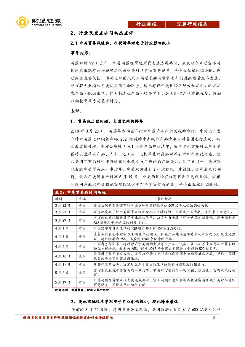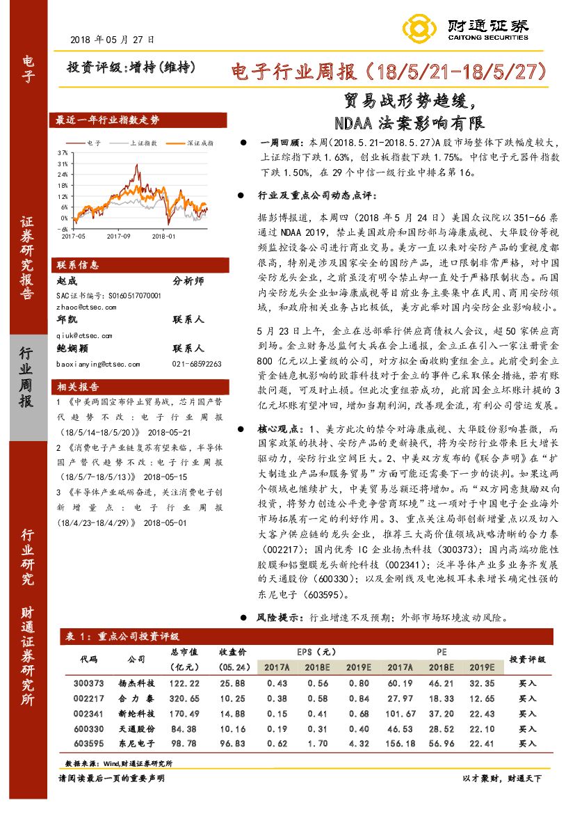 财通证券:电子行业周报:贸易战形势趋缓,NDAA法案影响有限.pdf