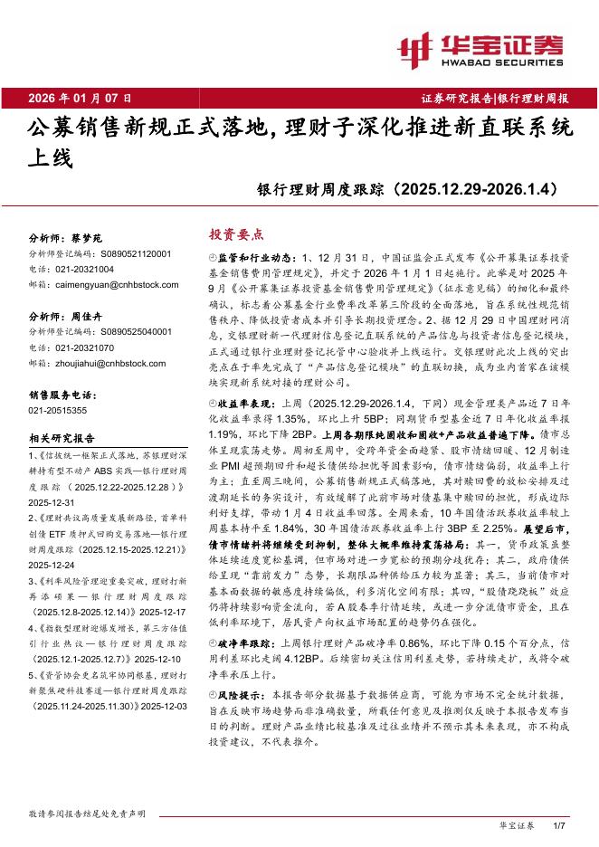 华宝证券:银行理财周度跟踪:公募销售新规正式落地,理财子深化推进新直联系统上线.pdf