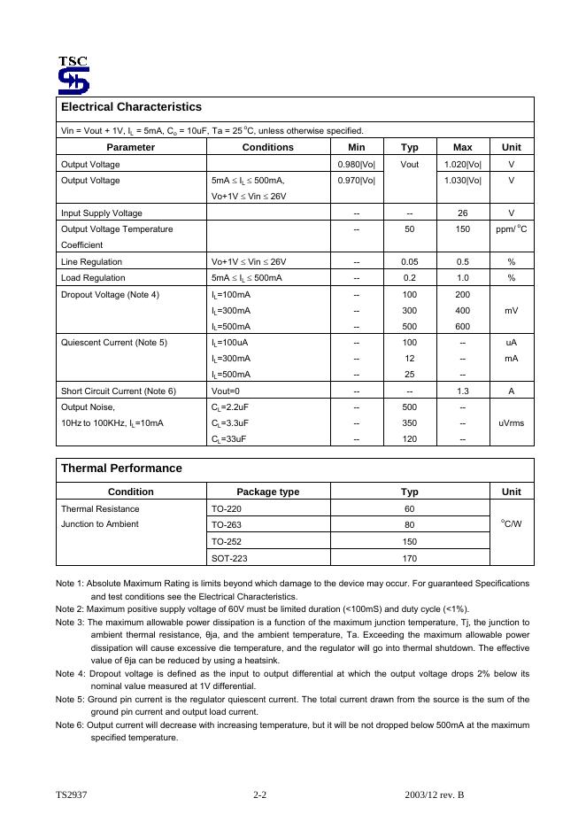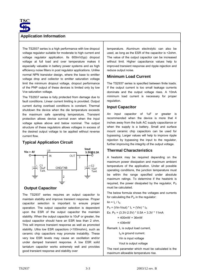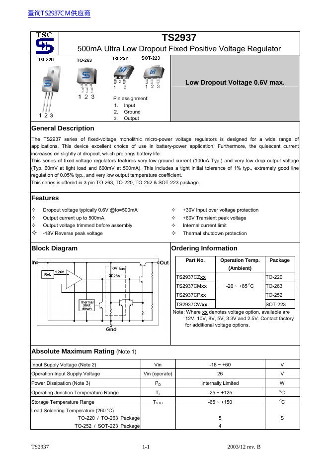 TSC TS2937 500mA Ultra Low Dropout Fixed Positive Voltage Regulator 数据手册.pdf