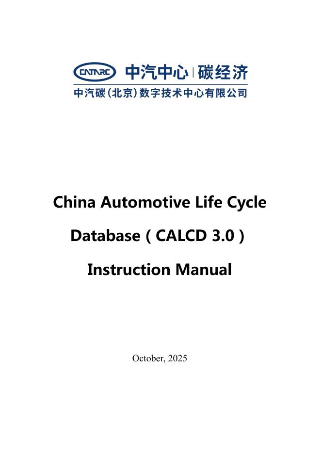 中汽中心:2025年中国汽车生命周期数据库(CALCD 3.0)使用手册(英文版).pdf