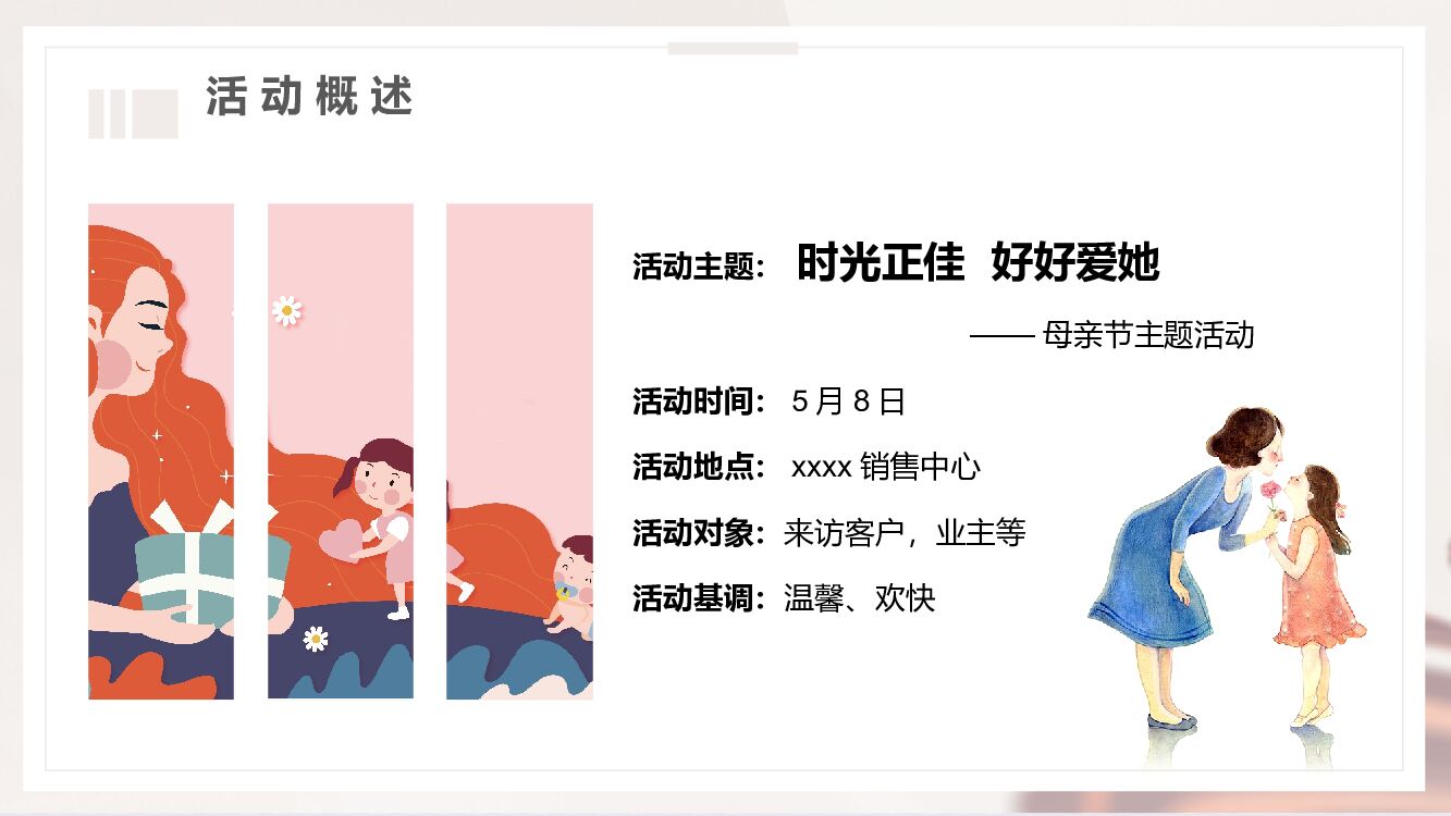 地产项目母亲节“惟愿时光清浅 将你温柔以待”主题活动策划方案.ppt