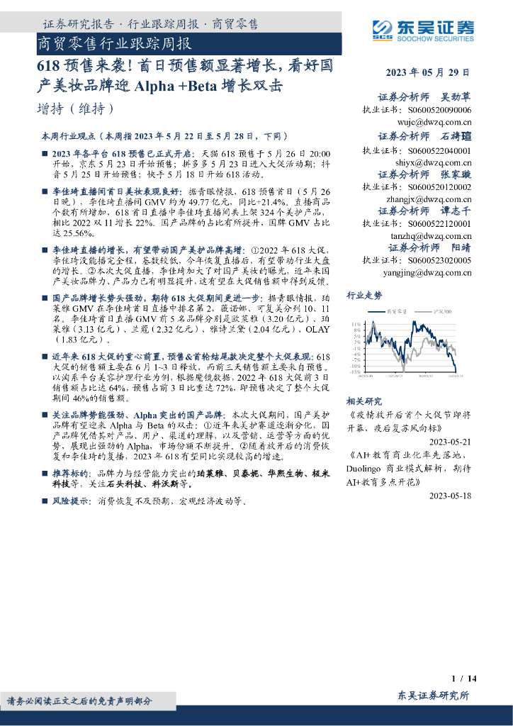 东吴证券:商贸零售行业跟踪周报:618预售来袭!首日预售额显著增长,看好国产美妆品牌迎Alpha+Beta增长双击.pdf