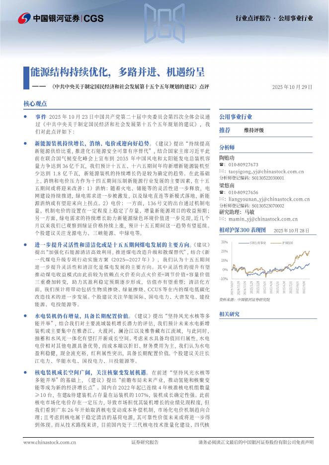 中国银河:公用事业行业《中共中央关于制定国民经济和社会发展第十五个五年规划的建议》点评:能源结构持续优化,多路并进、机遇纷呈.pdf