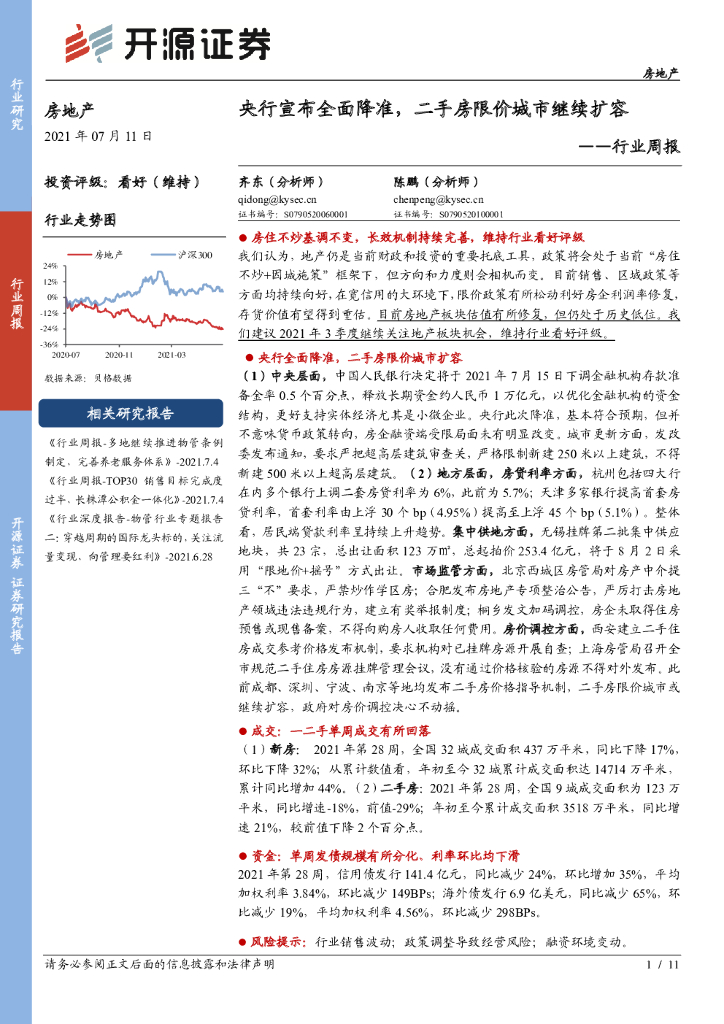 开源证券:房地产行业周报:央行宣布全面降准,二手房限价城市继续扩容.pdf