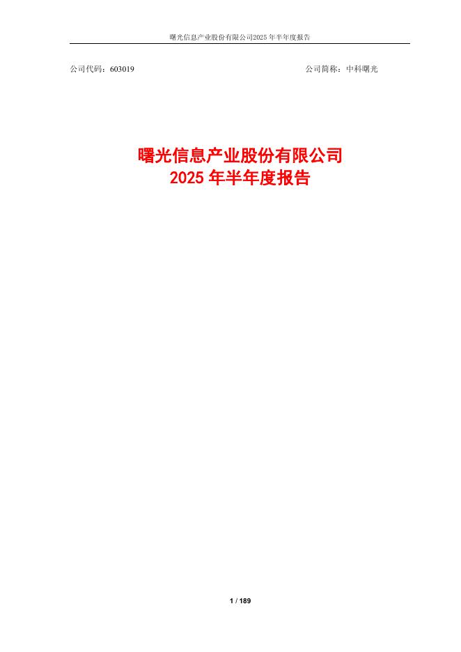 603019-中科曙光:中科曙光2025年半年度报告.pdf