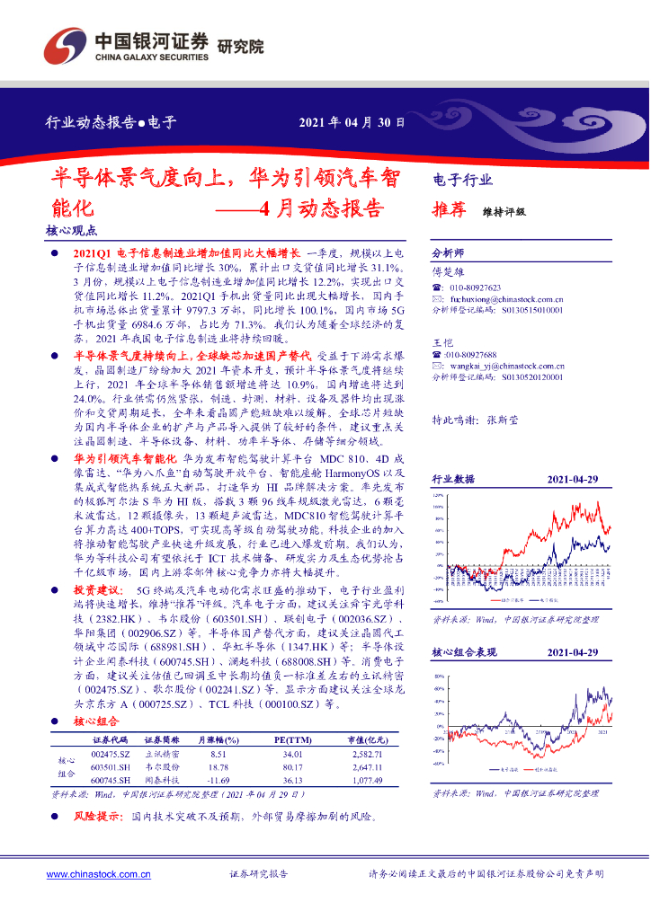 中国银河证券:电子行业4月动态报告:半导体景气度向上,华为引领汽车智能化.pdf
