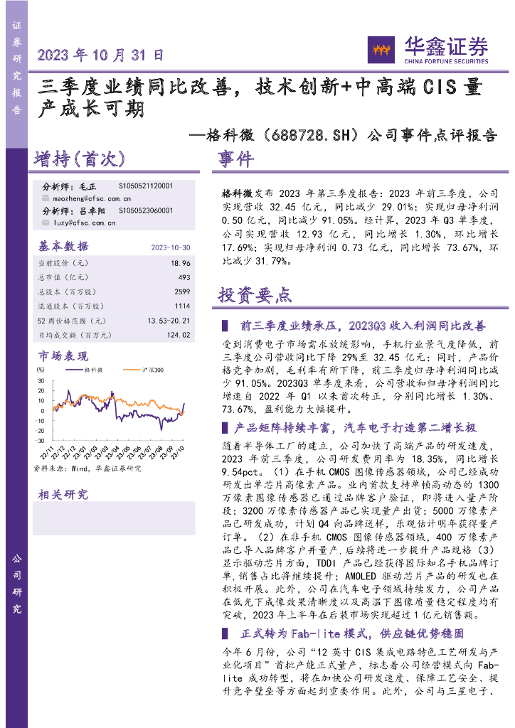 华鑫证券:格科微(688728)-公司事件点评报告:三季度业绩同比改善,技术创新+中高端CIS量产成长可期.pdf