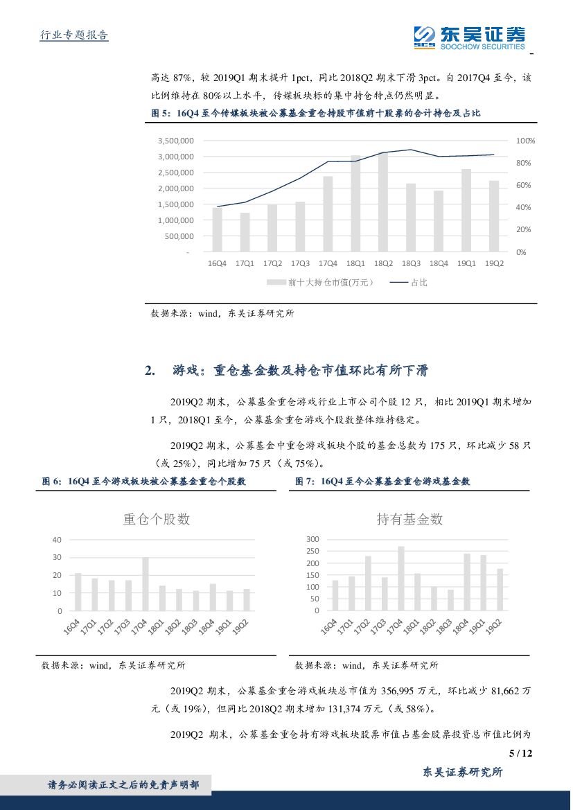 东吴证券:传媒行业2019Q2期末公募持仓分析:整体配置比例环比略降,集中持仓特点明显.pdf