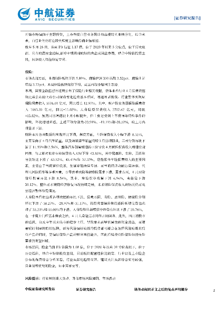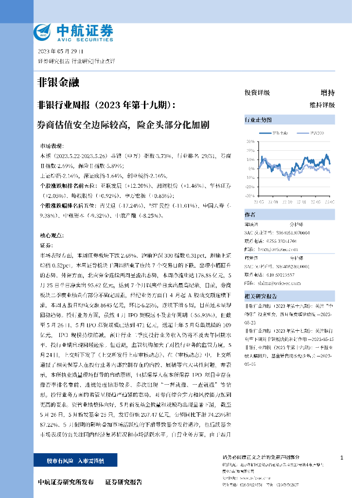 中航证券:非银行业周报(2023年第十九期):券商估值安全边际较高,险企头部分化加剧.pdf