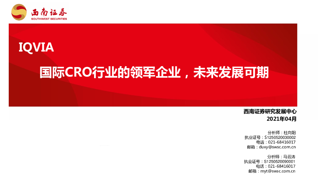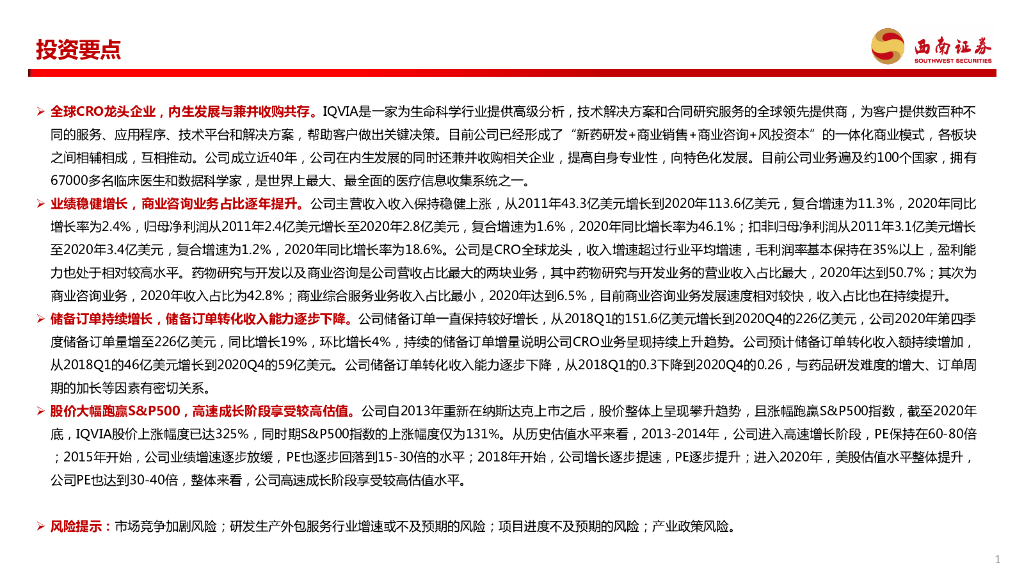西南证券:医药:IQVIA-国际CRO行业的领军企业,未来发展可期.pdf