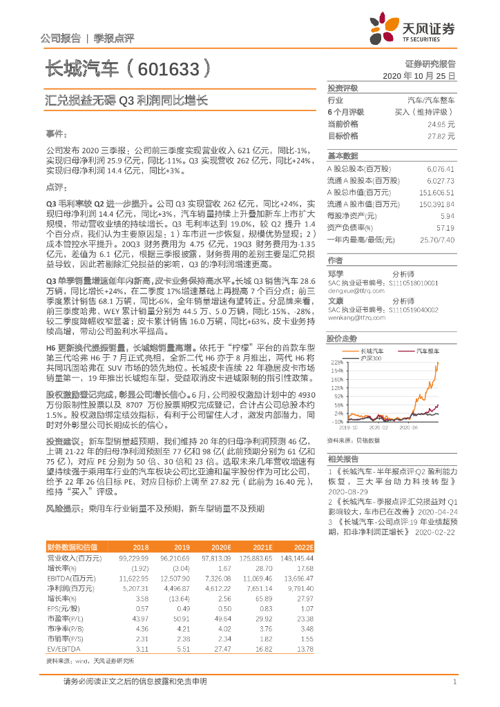 天风证券:长城汽车(601633)-汇兑损益无碍 Q3利润同比增长.pdf