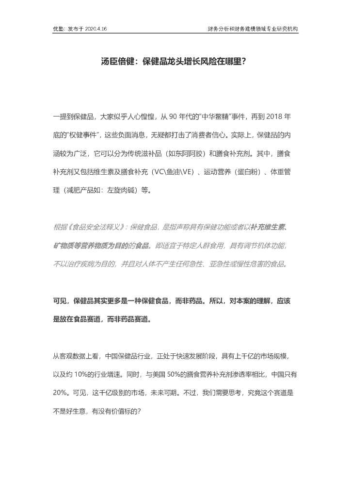 并购优塾:汤臣倍健—保健品龙头增长风险在哪里?.pdf