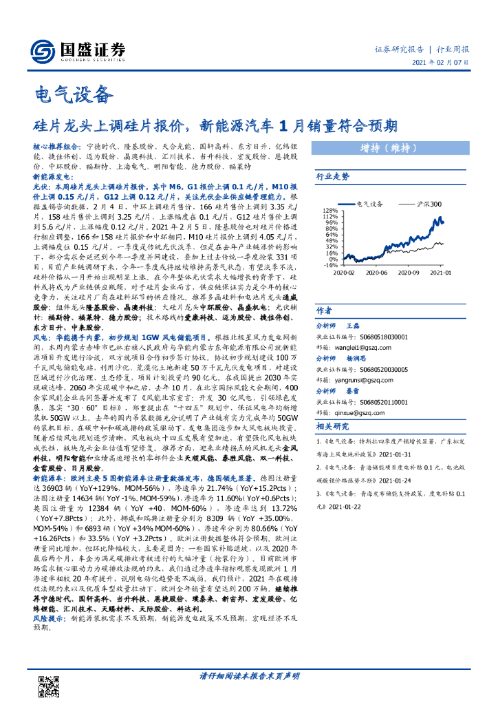 国盛证券:电气设备行业周报:硅片龙头上调硅片报价,新能源汽车1月销量符合预期.pdf