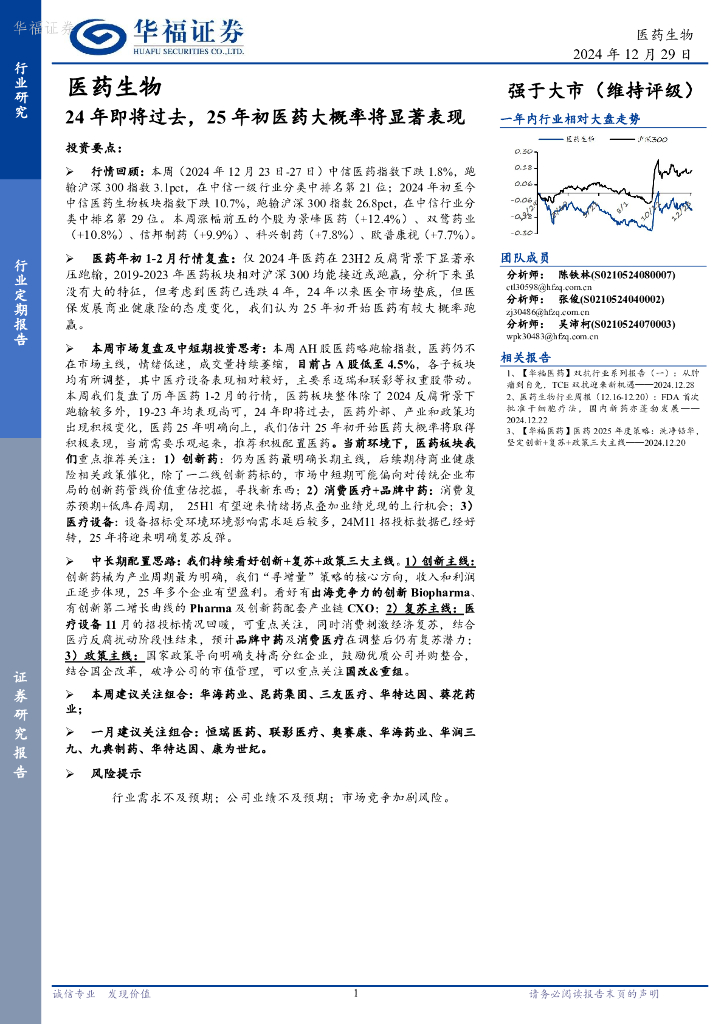 华福证券:医药生物行业定期报告:24年即将过去,25年初医药大概率将显著表现.pdf