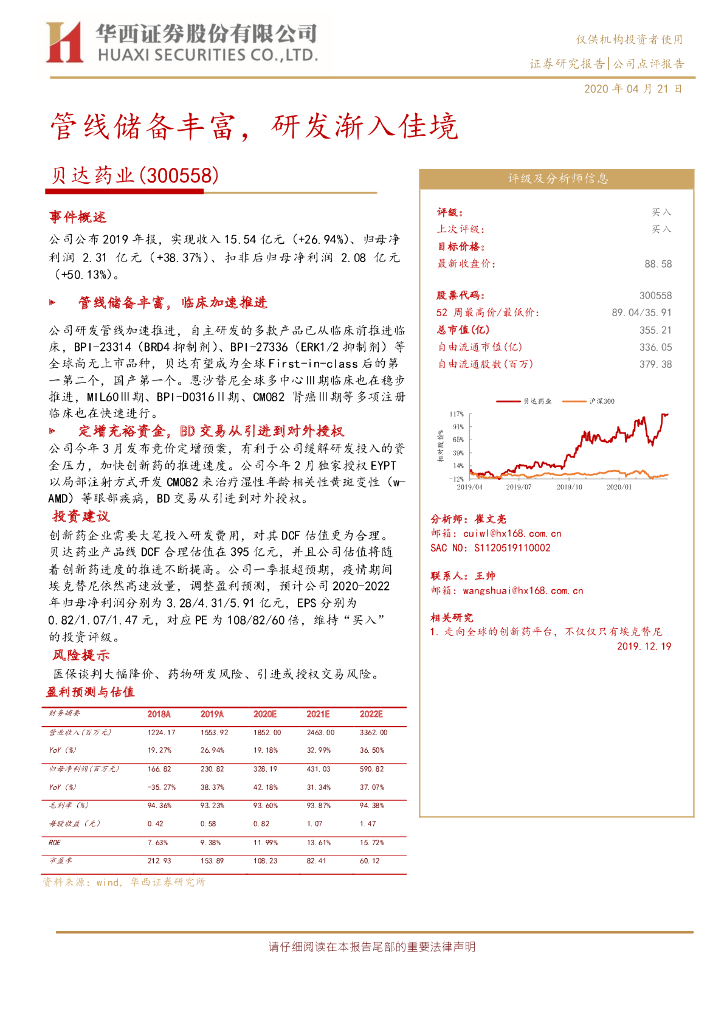华西证券:贝达药业(300558)-管线储备丰富,研发渐入佳境.pdf