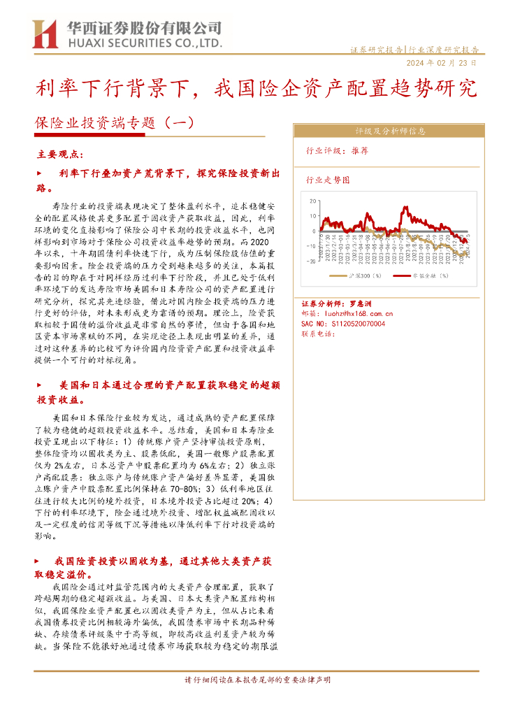 华西证券:保险业投资端专题(一):利率下行背景下,我国险企资产配置趋势研究.pdf