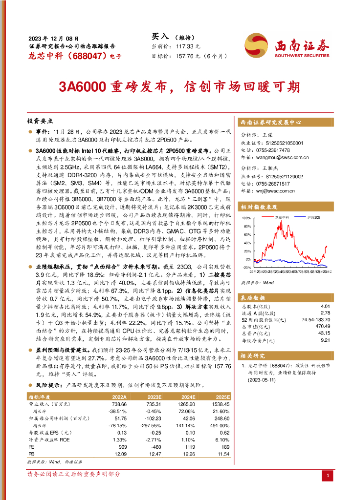 西南证券:龙芯中科(688047)-3A6000重磅发布,信创市场回暖可期.pdf