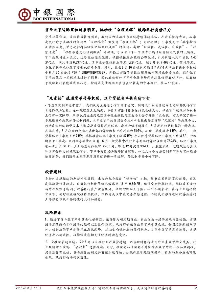 中银国际:央行二季度货政报告点评:货政报告传递积极信号,关注实体融资改善趋势.pdf