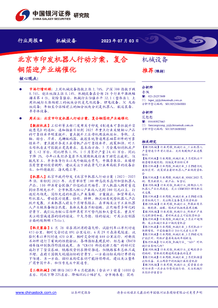 中国银河:机械设备行业周报:北京市印发机器人行动方案,复合铜箔迎产业端催化.pdf
