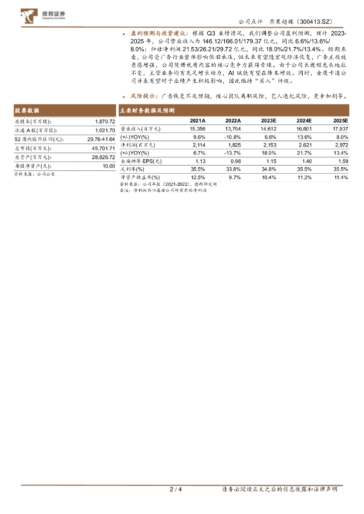 德邦证券:芒果超媒(300413)-主业稳健业绩增长,关注后续招商与金鹰卡通等带来的增量.pdf