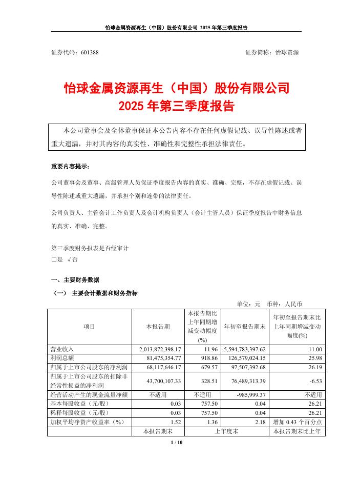 601388-怡球资源:怡球资源2025年第三季度报告.pdf