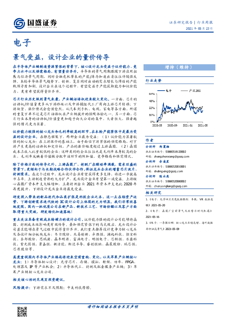 国盛证券:电子行业周报:景气受益,设计企业的量价传导.pdf