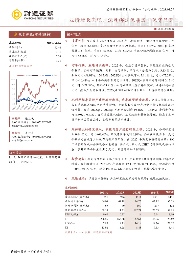 财通证券:宏微科技(688711)-业绩增长亮眼,深度绑定优质客户优势显著.pdf