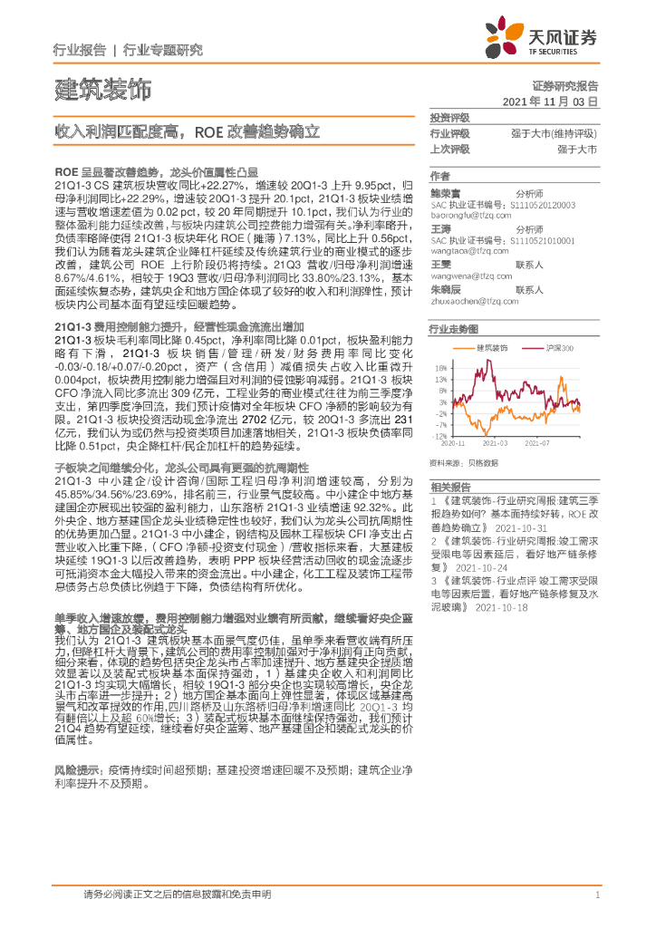 天风证券:建筑装饰行业专题研究:收入利润匹配度高,ROE改善趋势确立.pdf