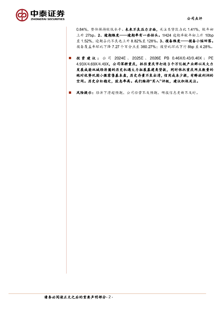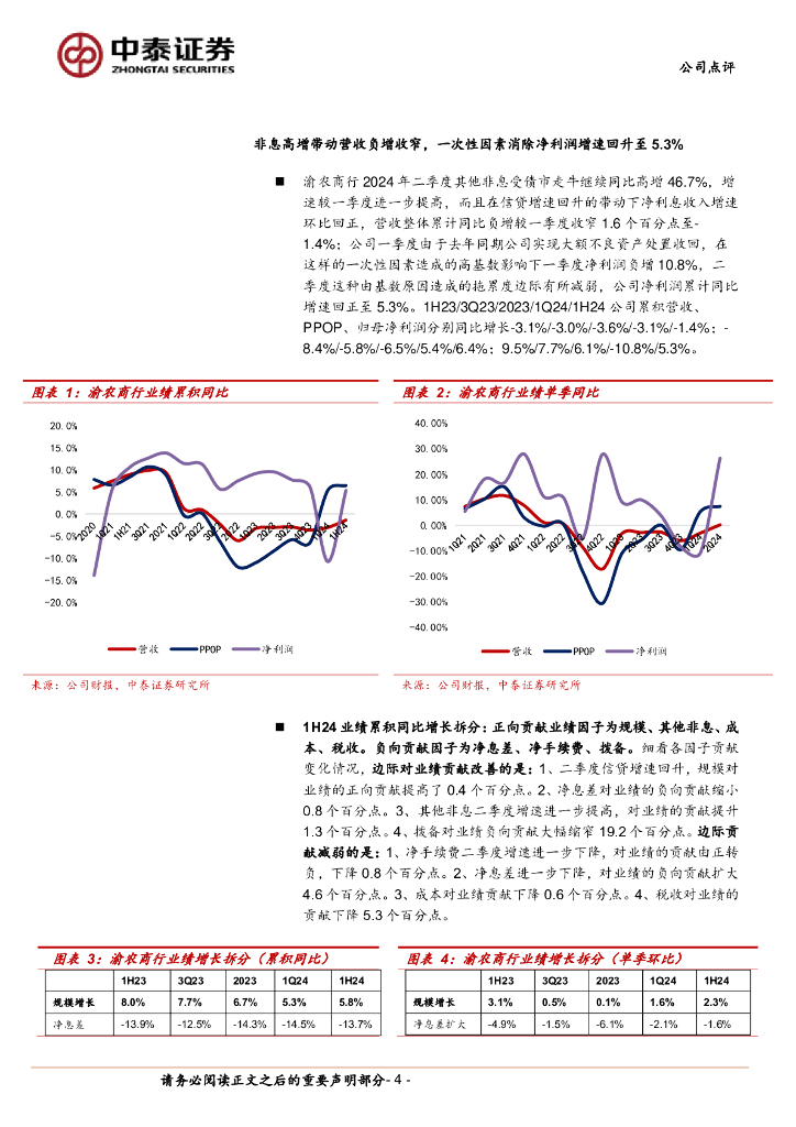 中泰证券:详解渝农商行2024半年报:非息高增带动营收负增收窄,基数拖累减弱净利润增速回升.pdf