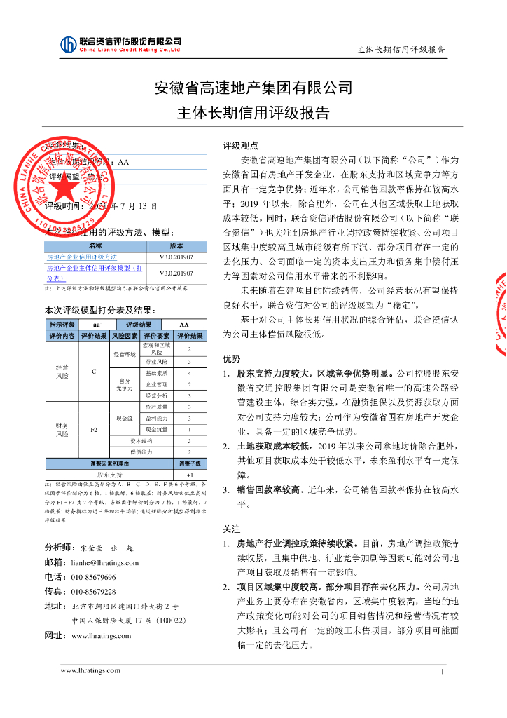 联合资信:安徽省高速地产集团有限公司信用评级报告.pdf