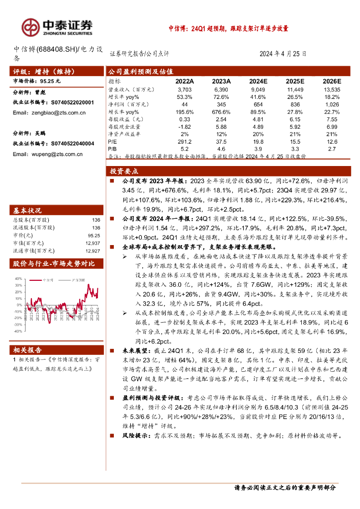 中泰证券:中信博:24Q1超预期,跟踪支架订单逐步放量.pdf