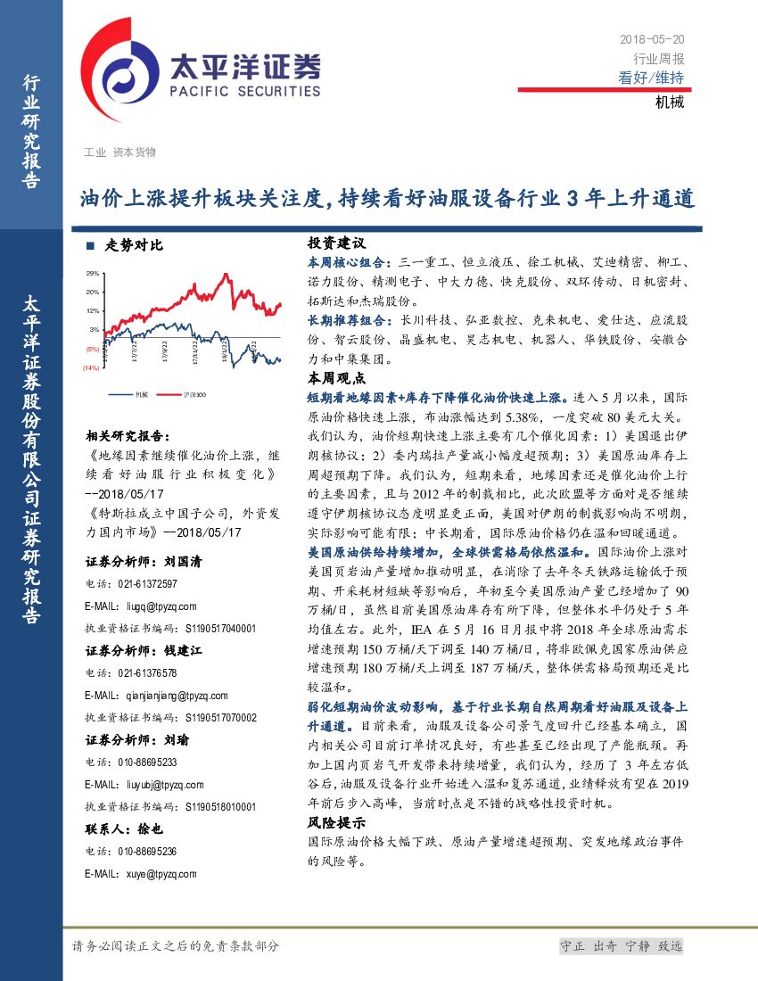 太平洋证券:机械行业周报:油价上涨提升板块关注度,持续看好油服设备行业3年上升通道.pdf