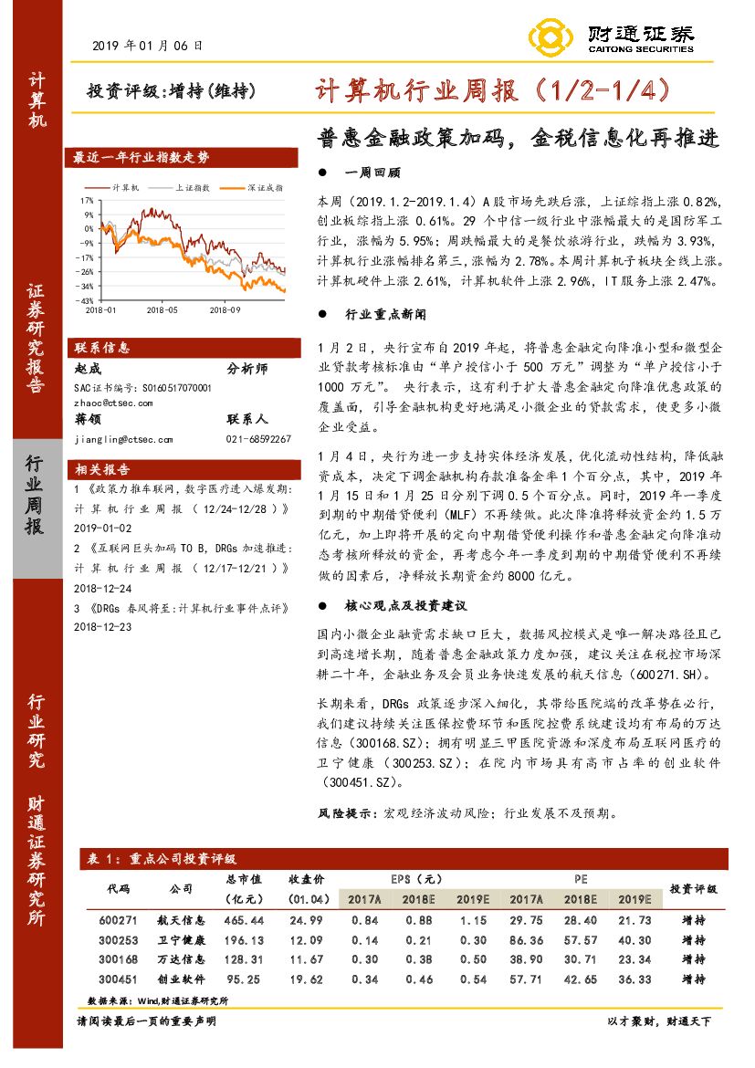 财通证券:计算机行业周报:普惠金融政策加码,金税信息化再推进.pdf