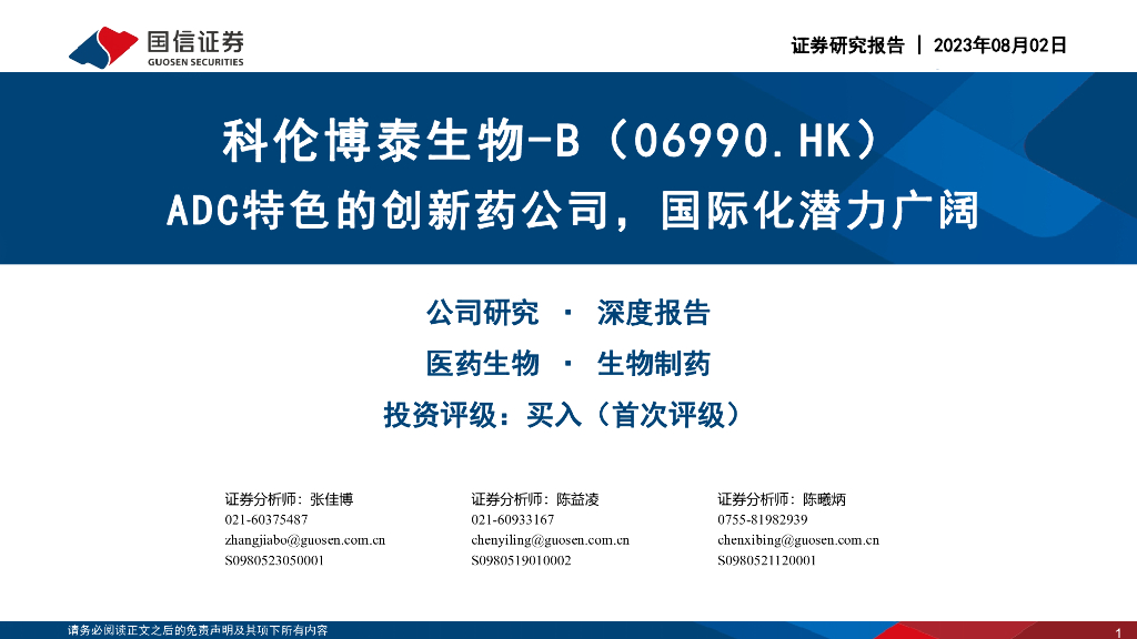 国信证券:科伦博泰生物-B(06990)港股公司研究报告-ADC特色的创新药公司,国际化潜力广阔.pdf