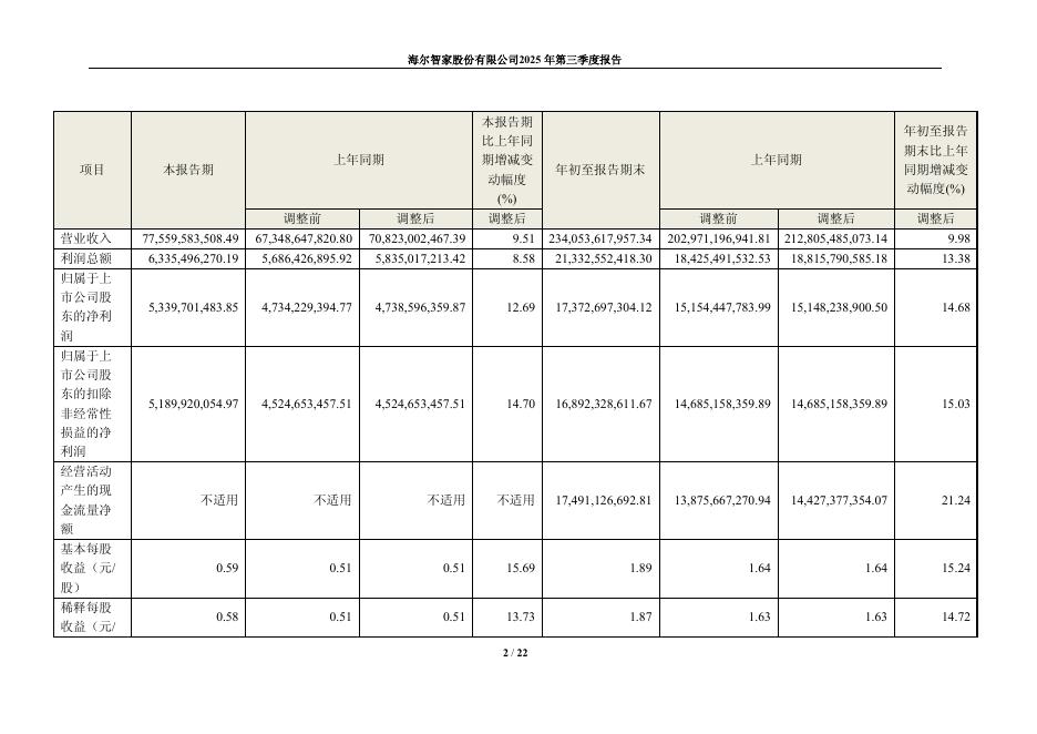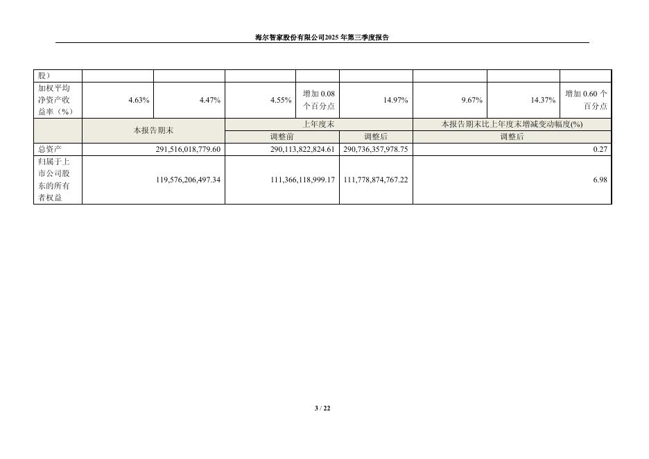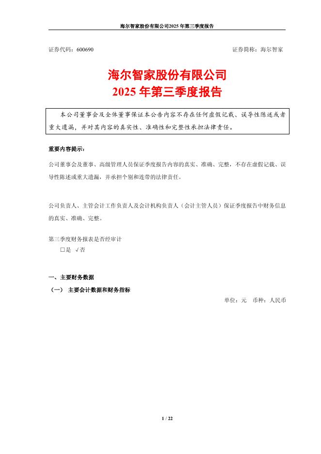 600690-海尔智家:海尔智家股份有限公司2025年第三季度报告.pdf