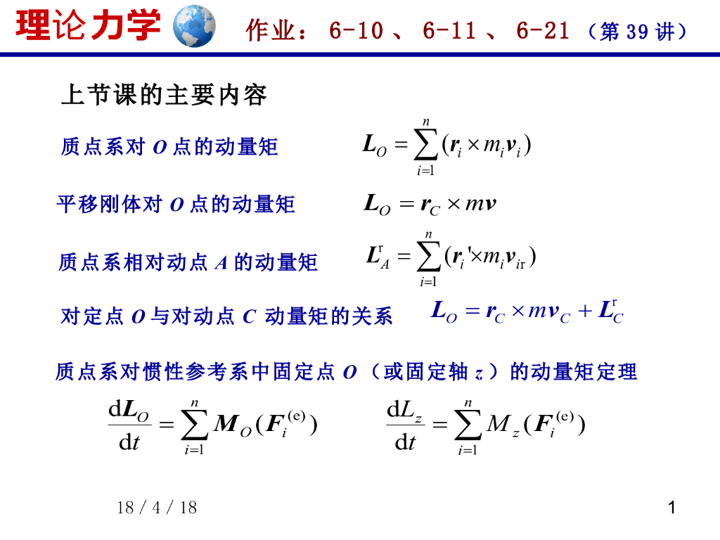 《理论力学》演示文稿-相对动点的动量矩定理(1).pdf