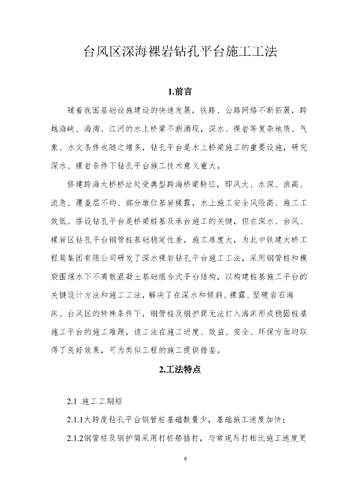 台风区深海裸岩钻孔平台施工工法17页.pdf