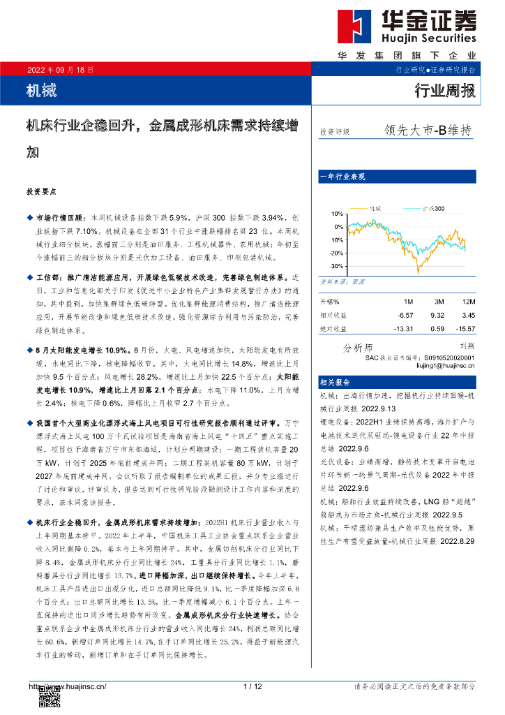 华金证券:机械行业周报:机床行业企稳回升,金属成形机床需求持续增加.pdf