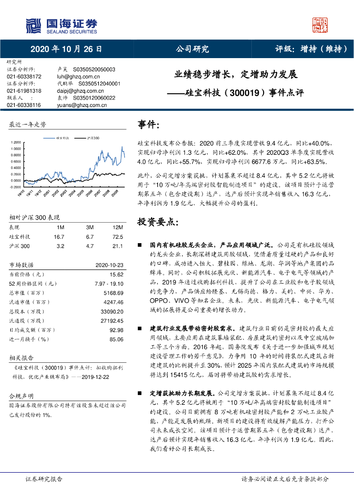 国海证券:硅宝科技(300019)-事件点评:业绩稳步增长,定增助力发展.pdf