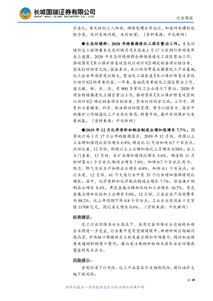 长城国瑞证券:化工行业双周报2020年第2期(总第27期):各地化工企业共抗疫情 央行开展1.2万亿元公开市场操作.pdf