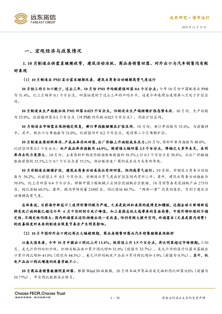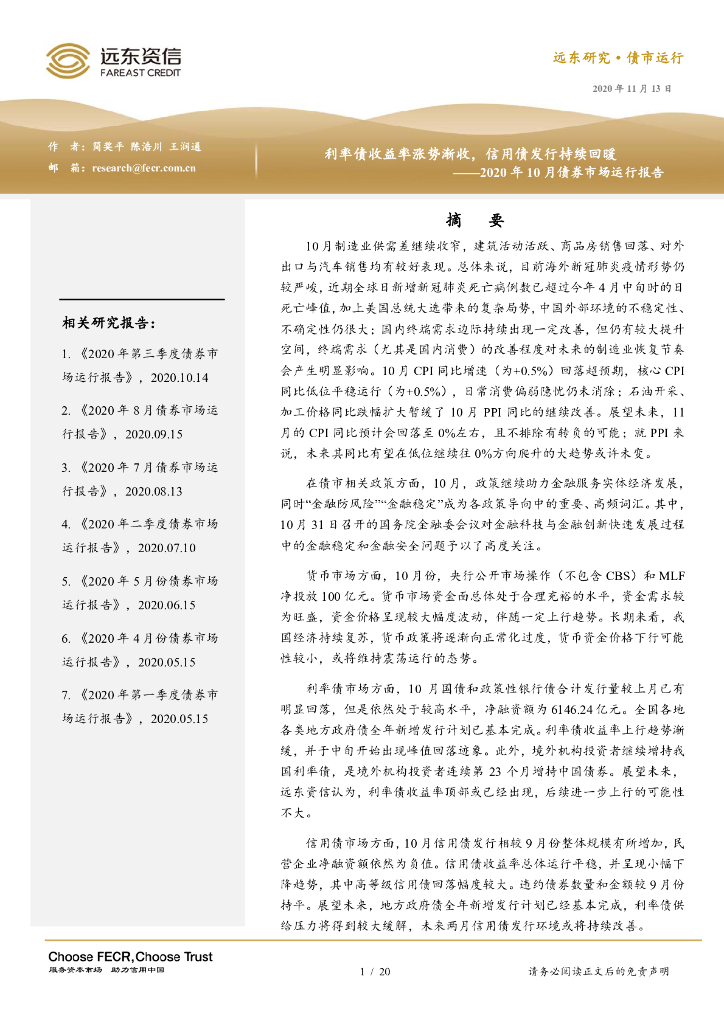 远东资信:2020年10月债券市场运行报告:利率债收益率涨势渐收,信用债发行持续回暖.pdf