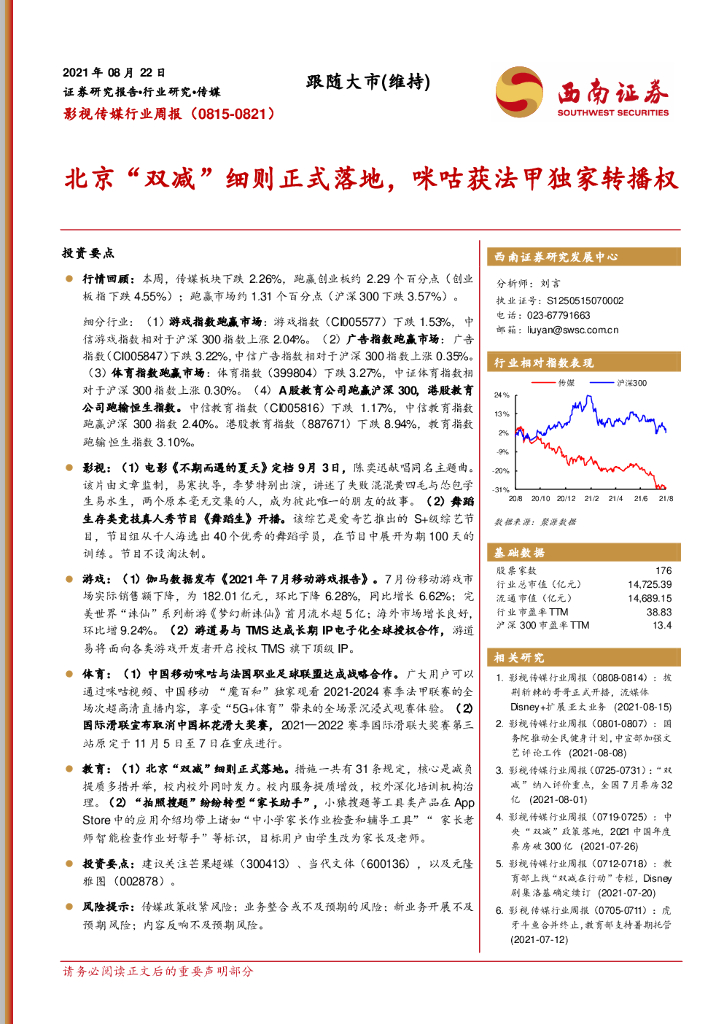西南证券:影视传媒行业周报:北京“双减”细则正式落地,咪咕获法甲独家转播权.pdf