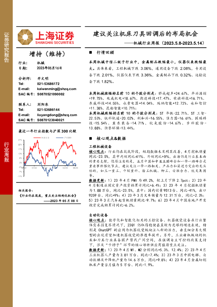 上海证券:机械行业周报:建议关注机床刀具回调后的布局机会.pdf